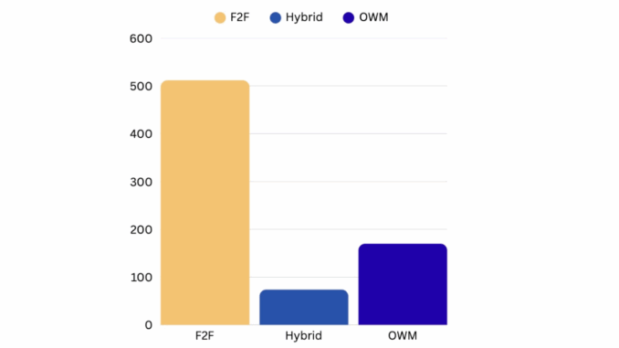 “Ideally, we have a healthy balance of modalities both across the college and within each discipline,” he said.“However, we strive to have a healthy percentage of in-person (F2F) and/or hybrid courses, given our relationship-centered ethos.”
