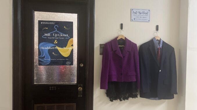 No matter your numeral size or gender, the Suit Up Closet has something every student can benefit from. Located in Lewis Hall, Room 225, students are welcome to visit Monday-Thursday from 9:00AM to 5:00PM and Fridays from 8:30AM until 4:30PM.